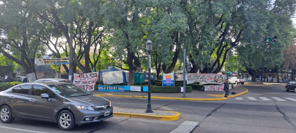 Sindicato Policial y Penitenciario de Buenos Aires (SIPPBA) apoyando acampe en plaza Espora, Almirante Brown